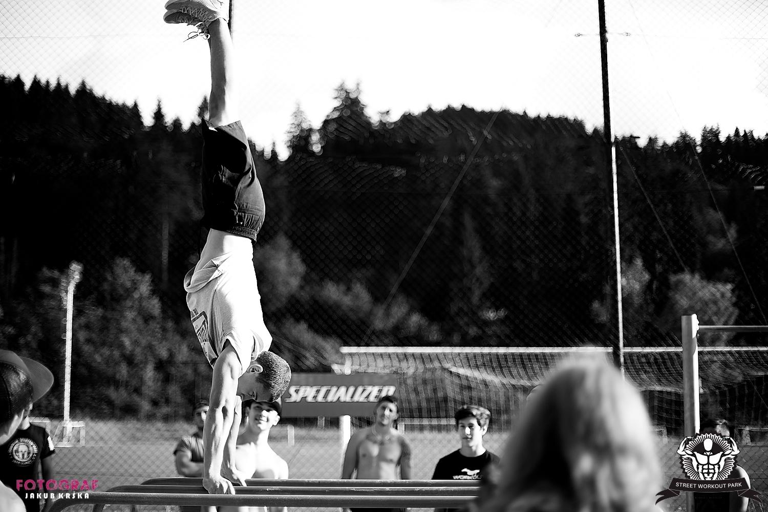 Častou otázkou na workoutistov je spodná časť tela. Je pravda, že väčšina z nich, ktorí sú na svetovej špičke vo freestyle, nohy necvičia. Ak by to robili, šli by sami proti sebe, pretože ťažšie nohy znamenajú veľkú záťaž pre ich výkon, čo je pochopiteľné. Ja osobne som zástancom komplexnosti, takže nohy cvičím skoro pri každom tréningu. Nemôžem o sebe povedať, že ich mám dobré a ani sa nimi chváliť, no snažím sa, aby som nevyzeral ako kurča. Podstatnú časť tréningu však venujem hornej časti tela. Minulý rok som začal chodiť na prvé súťaže. Dostavili sa menšie úspechy, ale hlavne som vďaka tomuto športu spoznal strašne moc skvelých ľudí. Je to pouličný šport, takže na súťažiach sa navzájom hecujeme a vrieskame po sebe, čo vám vie dodať neskutočnú energiu. Ďalej sa po celom Česku a Slovensku organizujú Jamy, na ktorých sa spoločne rozbijeme tak, že na druhý deň ani nezdvihnem ruky.