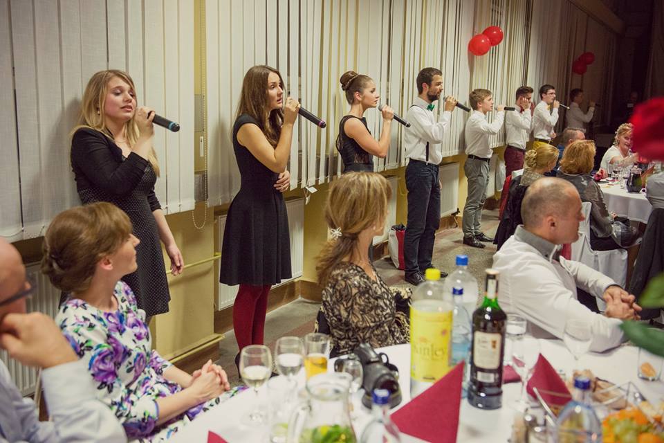 Spievali sme netradične s Richardom Rickkonom a boli sme pozvaní aj do Telerána. Nedávno sme spievali v Trnave na beánii, takže sa nám pomaličky otvárajú dvere. Je to neskutočná zábava, ale na druhej strane obrovská drina. Hodiny presedené v ZUŠke pri klavíri, so slúchadlami pri YouTube a spievanie do úmoru. Keď sa nakopí veľa koncertov, je to dosť stres a obeta, ale ten výsledok po koncerte stojí za to. Zrazu je v nás obrovská energia a chuť ísť stále ďalej. Veľmi dúfam, že nám to vydrží až kým nepomrieme. Keby ste si nás chceli niekedy prísť vypočuť a pozrieť, prípadne oplakať čo ste zmeškali, sledujte náš facebook.